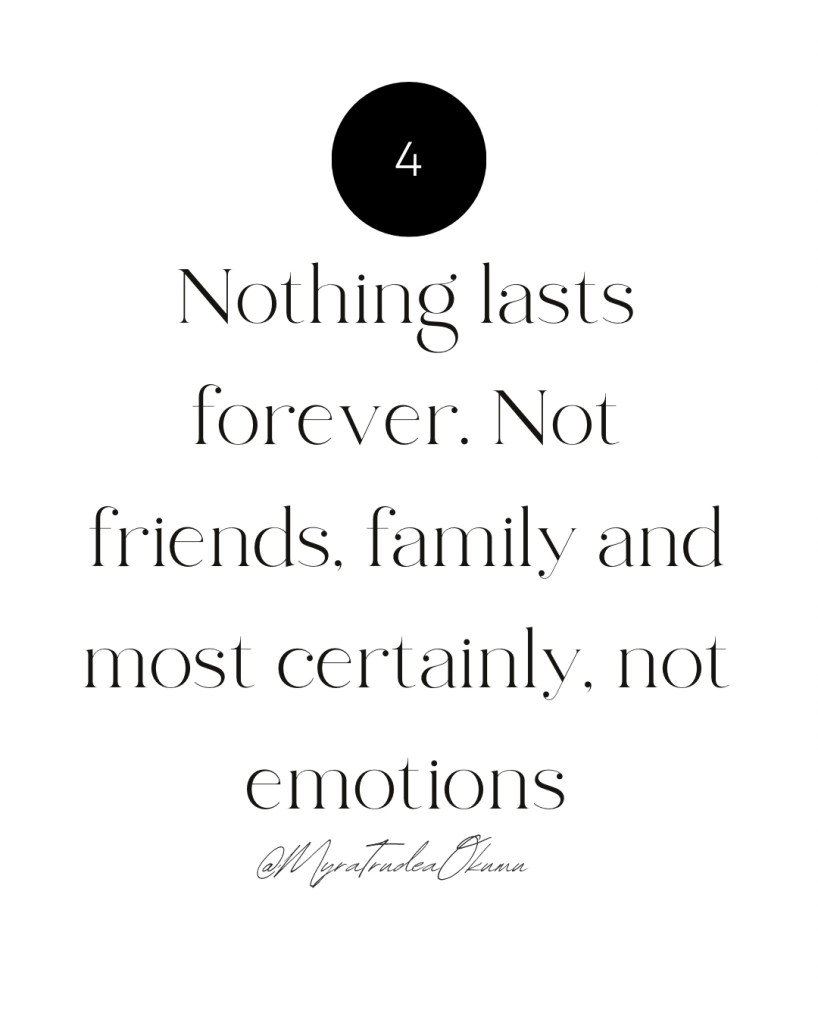 I have become more accepting of life, more tolerant of people and their problematic views, more understanding of people’s choice and most of all, more patient with myself as I go through all the seasons that were meant for me. I have also accepted that not everyone will stick around through the said seasons and that is okay. It is okay and only right for other people to prioritise themselves and their peace away from me, I wish them well from a God-fearing distance.Change is tough and adapting to new things is tougher but I find that, more and more each day, there is nothing more serene, breathtaking and beautiful like learning to love yourself all over again!