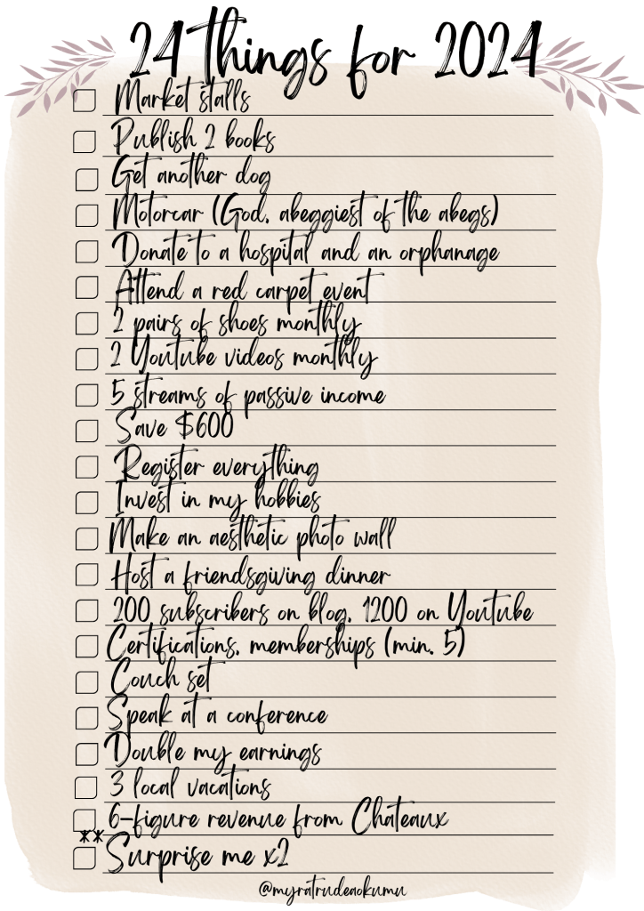 It’s incredible how many of us forget to include ourselves on our list of priorities. Or, on a list of any kind for that matter. I made the 2023 list and stuck to it with my chest and I saw monumental changes in different aspects of my life, and it also allowed me to fine tune on all the things I missed out or overlooked.